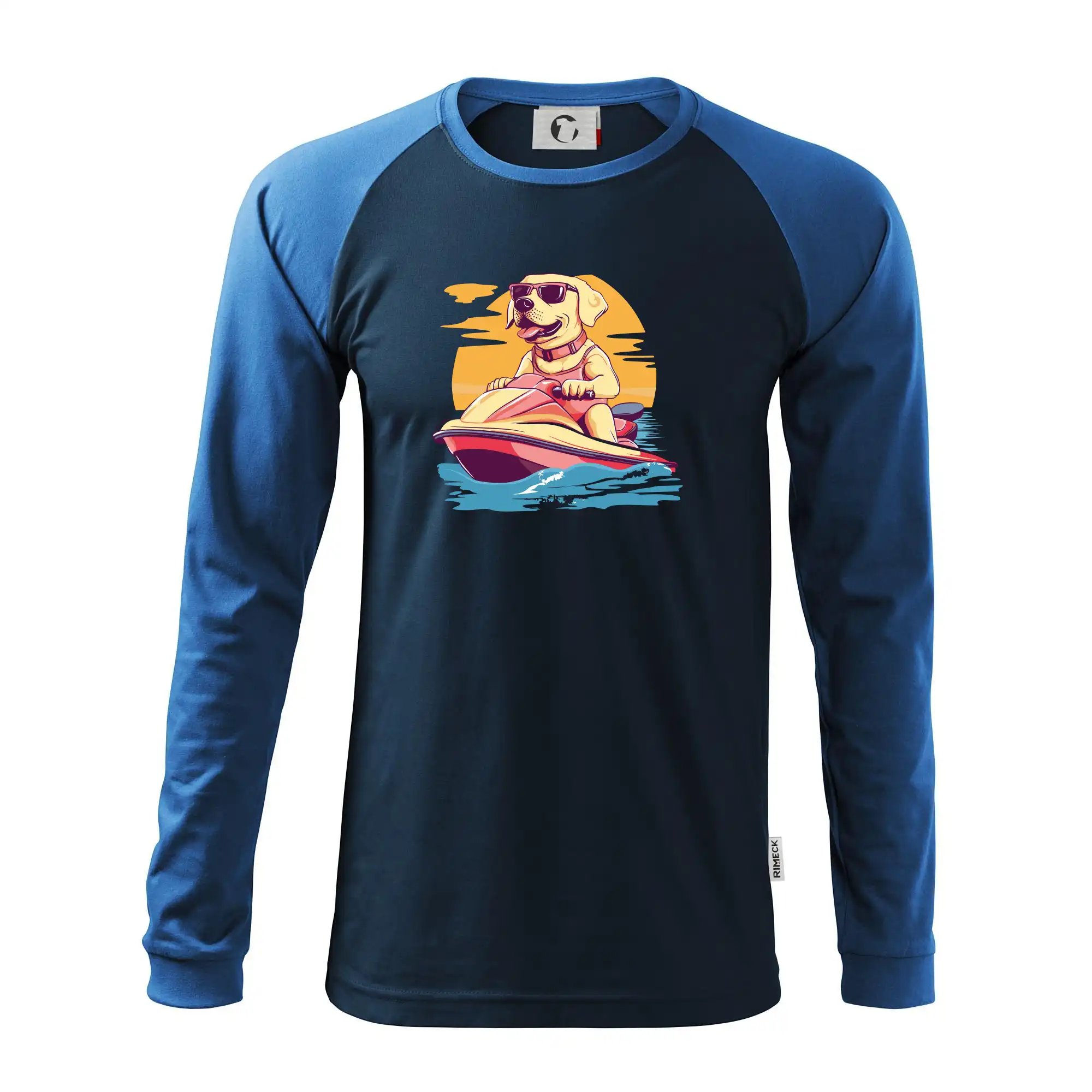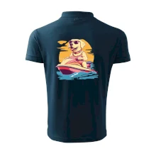 Zlatý retriever na vodnom skútri