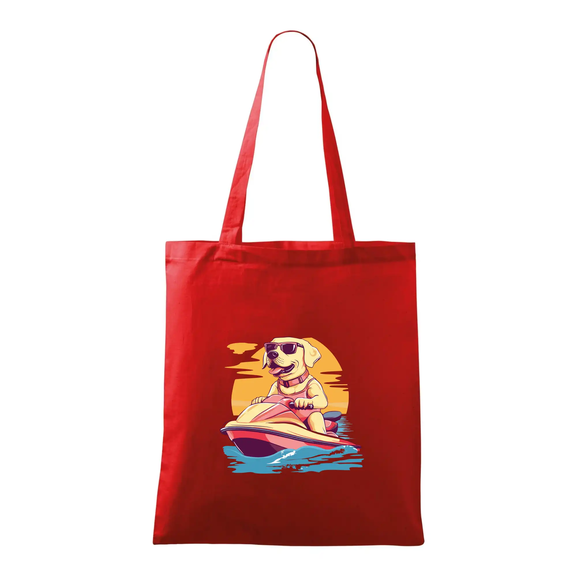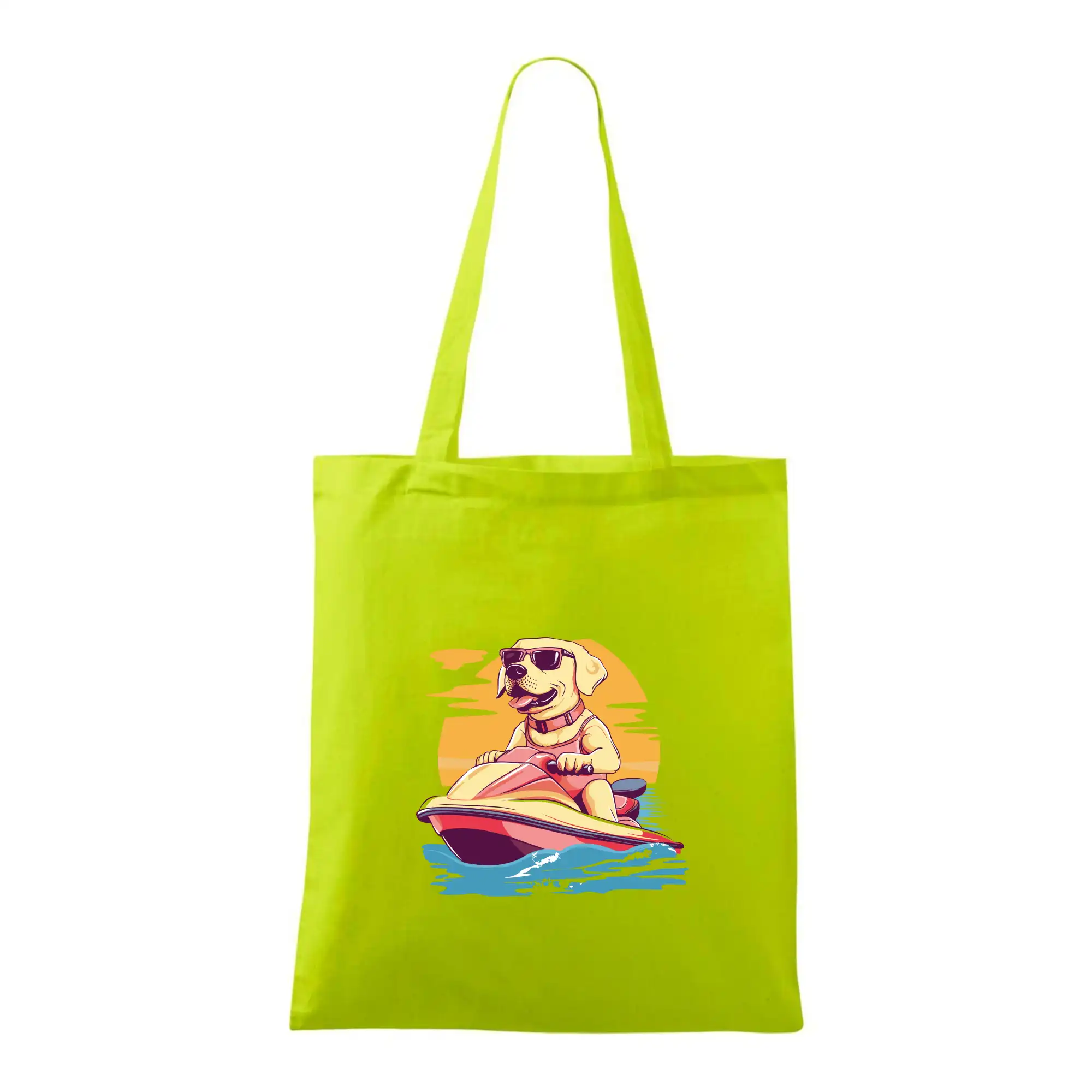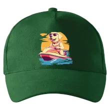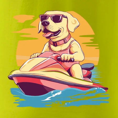 Zlatý retriever na vodnom skútri