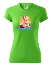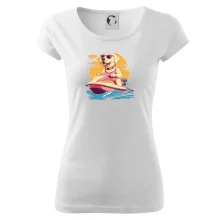 Zlatý retriever na vodnom skútri