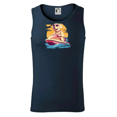 Zlatý retriever na vodnom skútri