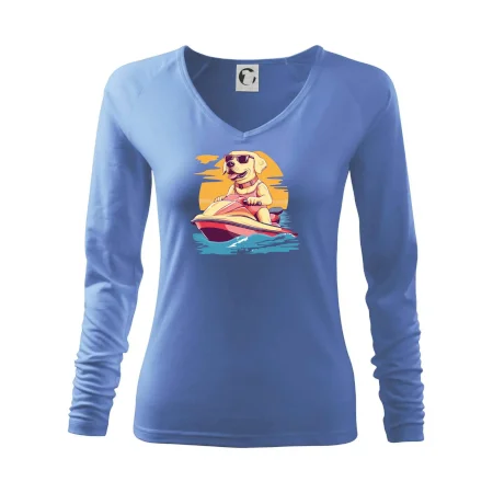 Zlatý retriever na vodnom skútri