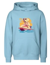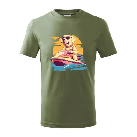 Zlatý retriever na vodnom skútri