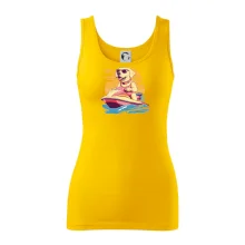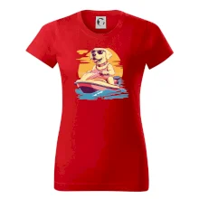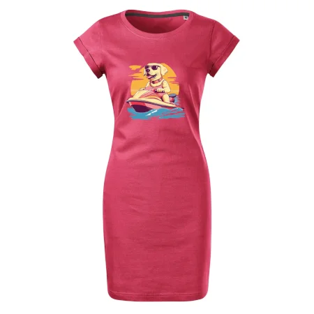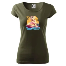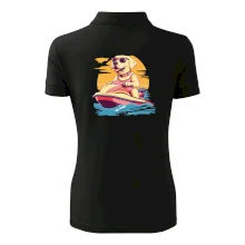 Zlatý retriever na vodnom skútri