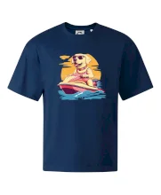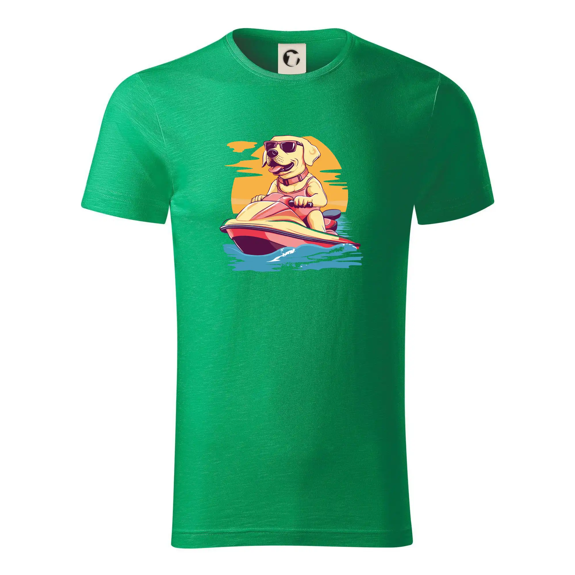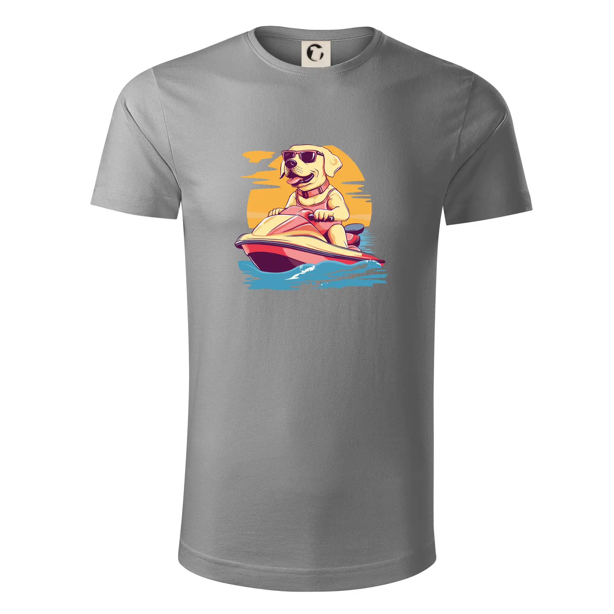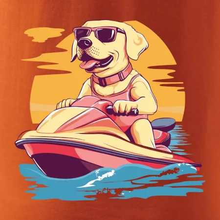 Zlatý retriever na vodnom skútri