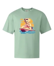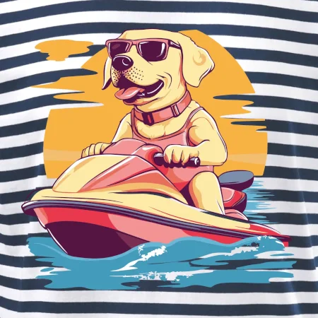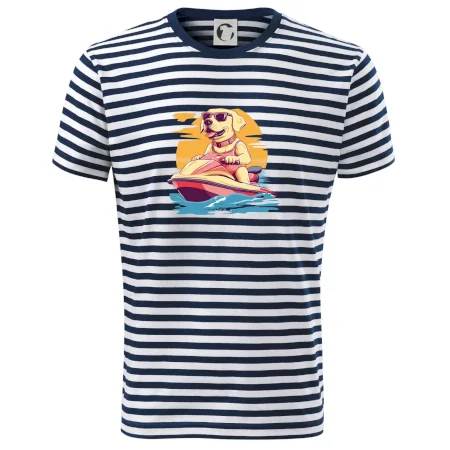 Zlatý retriever na vodnom skútri