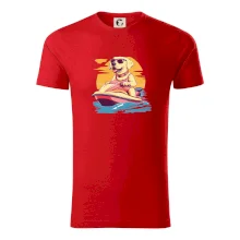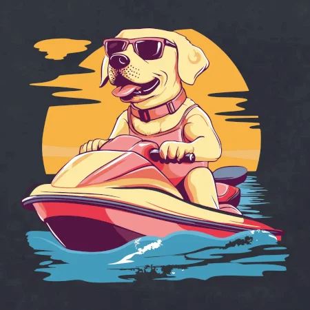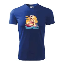Zlatý retriever na vodnom skútri