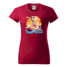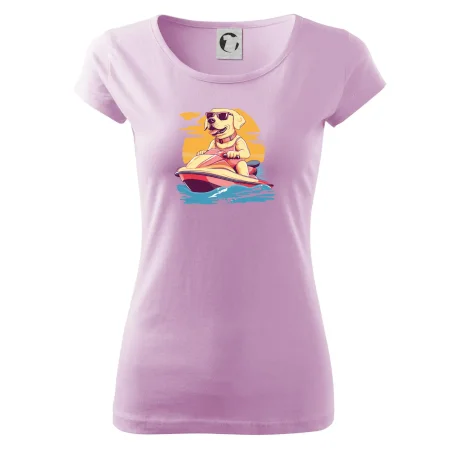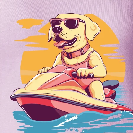 Zlatý retriever na vodnom skútri