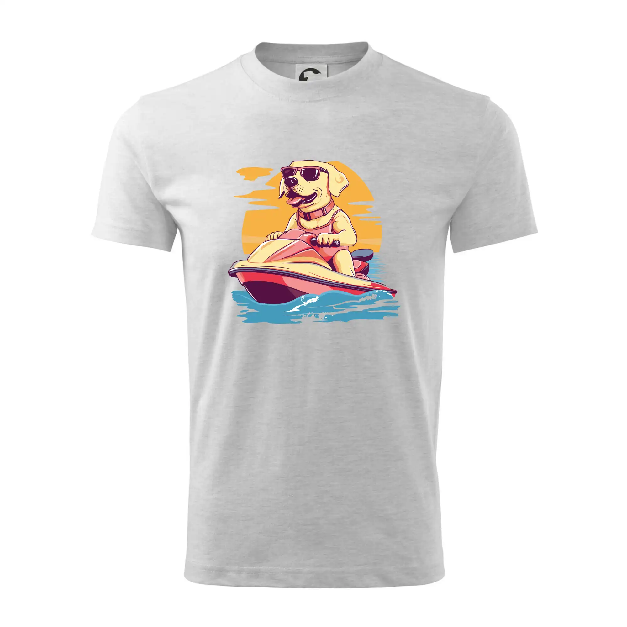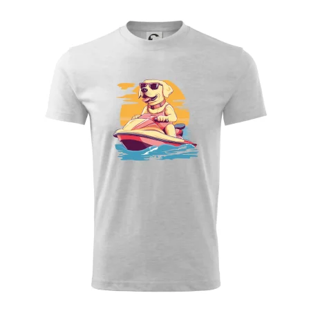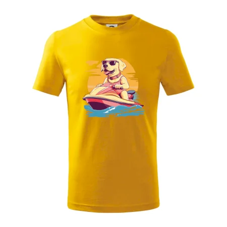 Zlatý retriever na vodnom skútri
