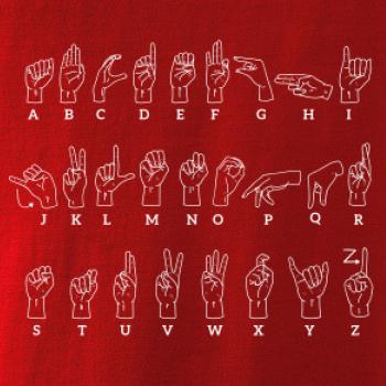 Zástěra s potiskem znakové řeči. ️ Originální vintage design nejen pro neslyšící. Učte se znakovat při vaření! Praktický a poučný dárek. Koupit zde.