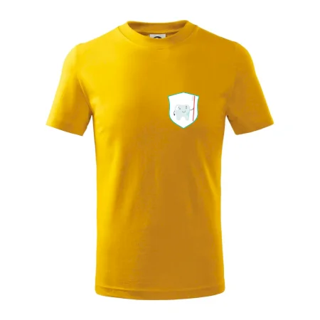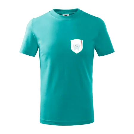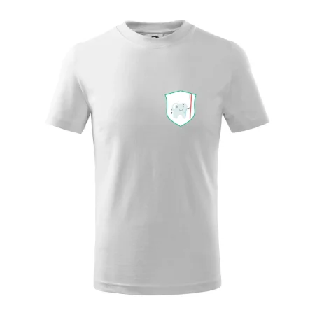 Detské tričko strednej gramáže s bočnými švami. Úzky priekrčník s prídavkom 5% elastanu. Vnútorná časť zadného priekrčníka začistená tkanou páskou. Spevnený ramenný šev.