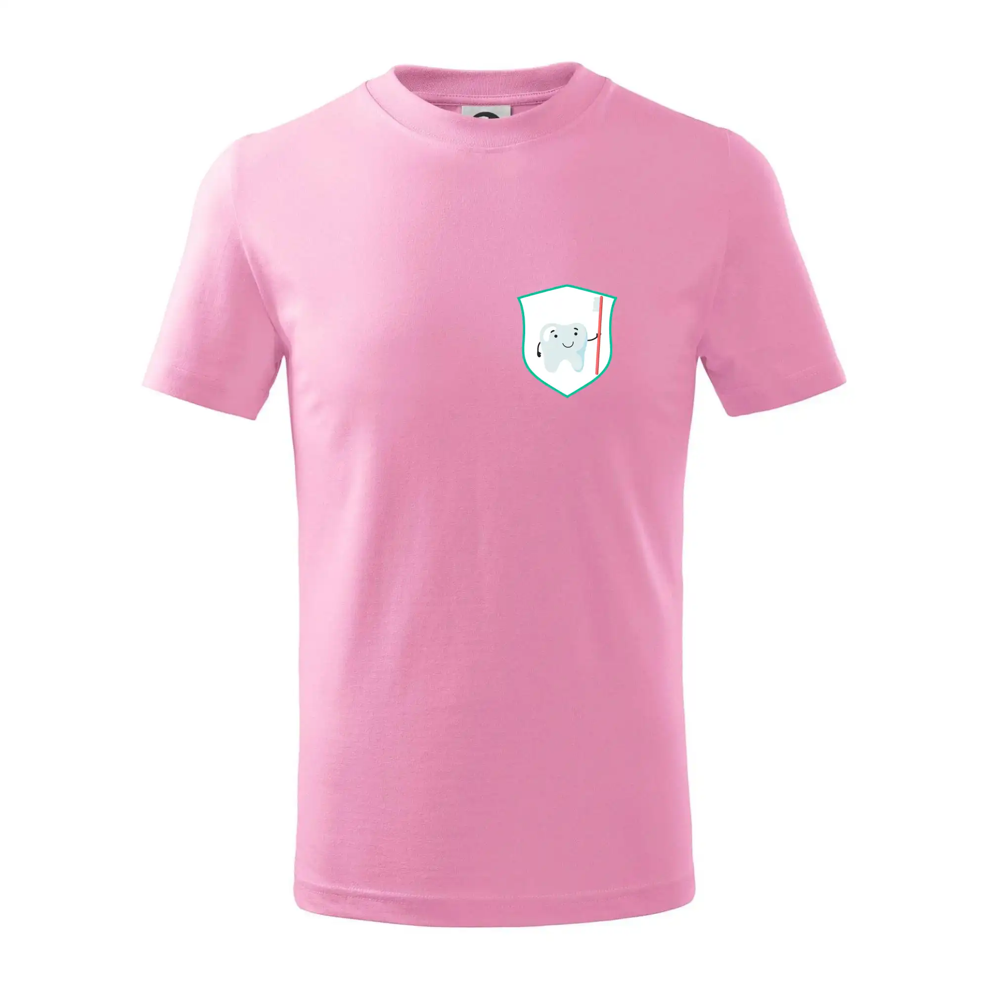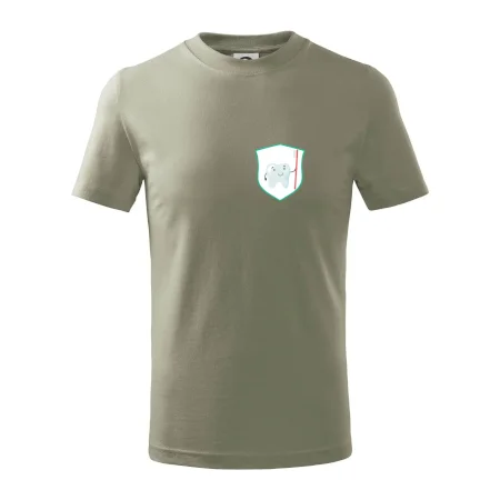 Detské tričko strednej gramáže s bočnými švami. Úzky priekrčník s prídavkom 5% elastanu. Vnútorná časť zadného priekrčníka začistená tkanou páskou. Spevnený ramenný šev.